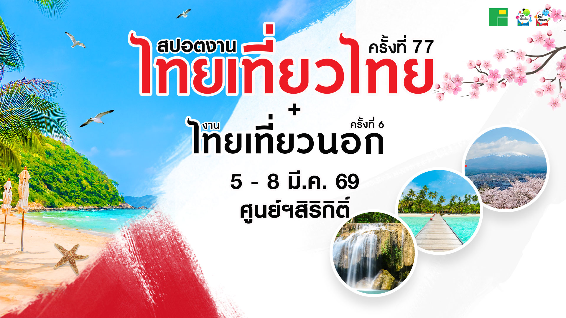 เตรียมพบกับมหกรรมท่องเที่ยวครั้งยิ่งใหญ่แห่งปี 2569 กับงานไทยเที่ยวไทย ครั้งที่ 77 แพ็คเกจเที่ยวหน้าร้อนรวมกว่า 1,200 บูธ จากโรงแรม รีสอร์ท ทัวร์ รถเช่า สายการบิน สปา เรือสำราญ สถานพักผ่อนหย่อนใจ ฯลฯ ครบครันด้วยโปรโมชั่นลดราคาพิเศษเฉพาะที่งานนี้เท่านั้น !!! พบกัน 5 – 8 มีนาคม 2569 เวลา 10.00 – 21.00 น. ณ ศูนย์การประชุมแห่งชาติสิริกิติ์ ฮอลล์ 5 – 7 เข้าชมงานฟรี!