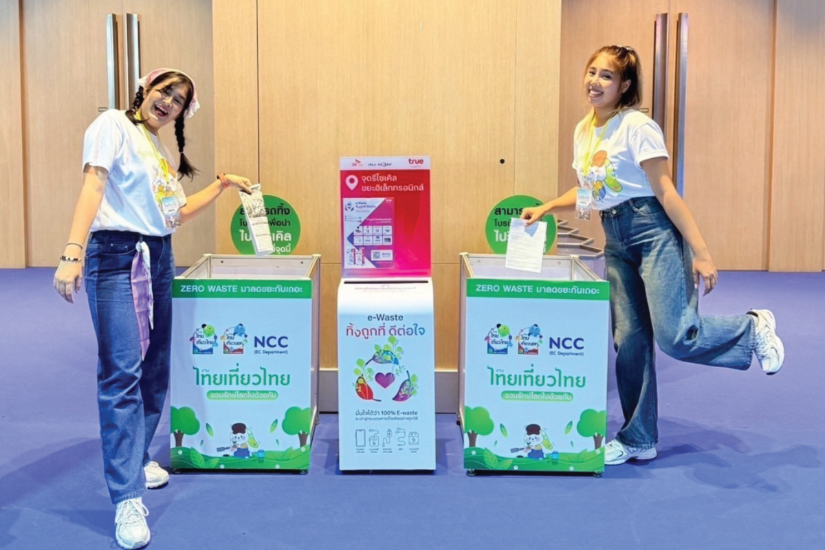 PK ร่วมกับ NCC และ TRUE สนับสนุนโครงการเที่ยวรักษ์โลกในงานไทยเที่ยวไทยที่ศูนย์สิริกิติ์ จัดทำถังขยะ “Zero Waste มาลดขยะกันเถอะ” และ E – Waste ตั้งวางอยู่หน้าประตู ฮอลล์ 5 – 6 ผู้ชมงานสามารถทิ้งขยะประเภทกระดาษ ใบปลิว แผ่นพับ และขยะที่สามารถนำกลับมาใช้ใหม่ได้ ส่งเสริมแนวคิด 4R เพื่อขยะในงานเป็นศูนย์ ได้แก่ Recycle Reduce Reuse Repeat เพื่อการท่องเที่ยวที่ยั่งยืน ♻️
