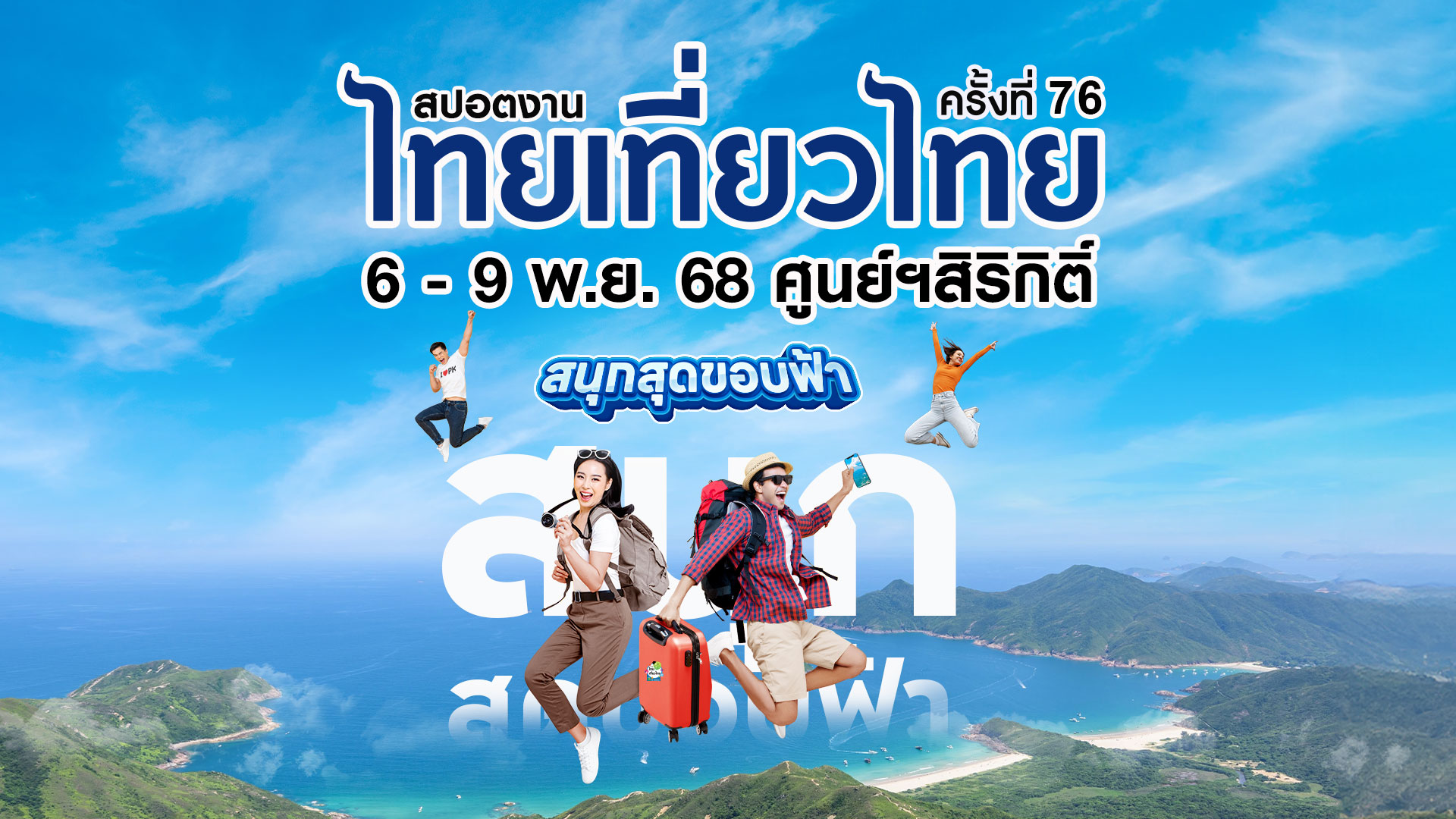 งานไทยเที่ยวไทย ครั้งที่ 76 | 6 – 9 พ.ย. 68 | 10:00 – 21:00 น. | ศูนย์การประชุมแห่งชาติสิริกิติ์